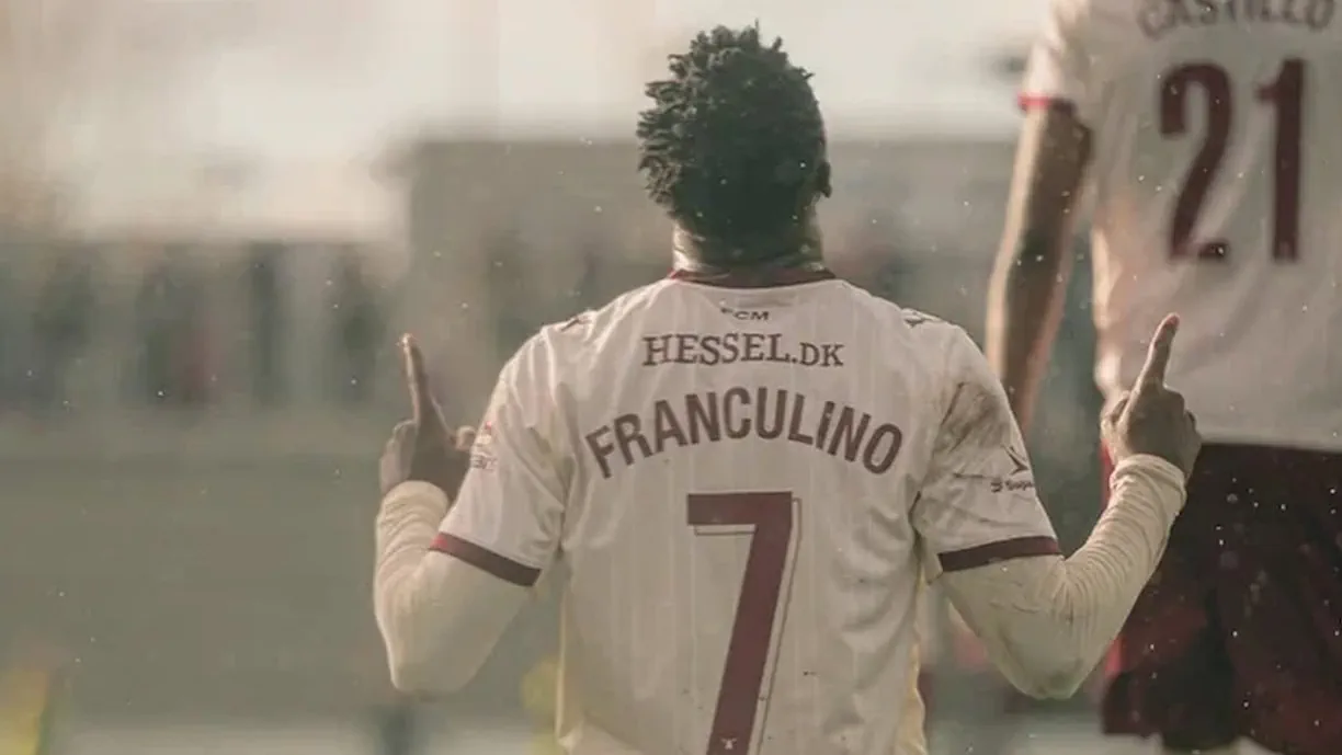 Lembrar que Franculino Djú representou o Benfica durante várias temporadas. Porém, depois de não ter chegado a acordo com o Clube da Luz, o ponta-de-lança rumou ao Midtjylland, onde tem estado em destaque (98 jogos, 51 golos e 11 assistências). No último mercado de transferências, o atleta esteve na mira do Bayern Munique.