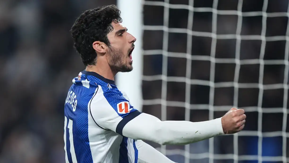 Nesta temporada, com a camisola da Real Sociedad, Gonçalo Guedes – avaliado em 6 milhões de euros – realizou 20 jogos: 18 na La Liga e dois na Copa del Rey. Nos 1.021 minutos em que esteve em campo, o avançado marcou quatro golos e fez duas assistências.